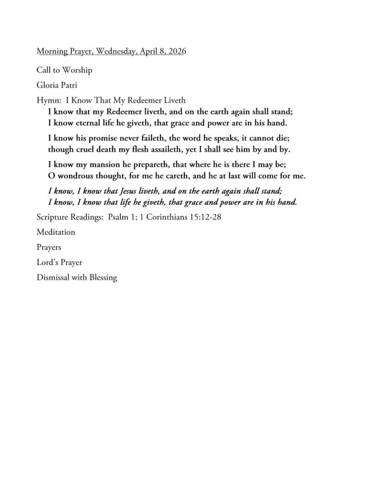 08 Apr 2026 Morning Prayer 0 April 8, 2026 First Christian Church 6142 Views 0 Likes Uncategorized Morning Prayer Video
