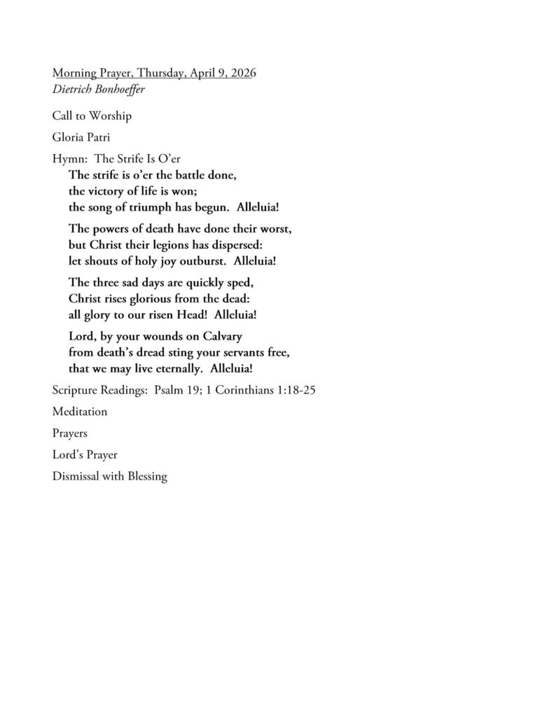09 Apr 2026 Morning Prayer 0 April 9, 2026 First Christian Church 6148 Views 0 Likes Uncategorized Morning Prayer Video
