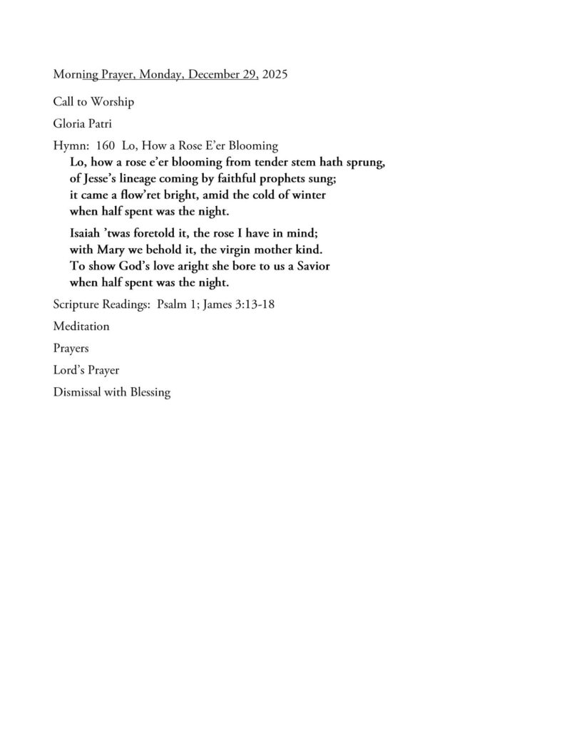 29 Dec 2025 Morning Prayer 0 December 29, 2025 First Christian Church 5701 Views 0 Likes Uncategorized Morning Prayer Video