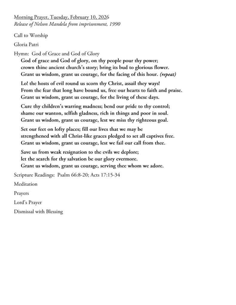 10 Feb 2026 Morning Prayer 0 February 10, 2026 First Christian Church 5824 Views 0 Likes Uncategorized Morning Prayer Video
